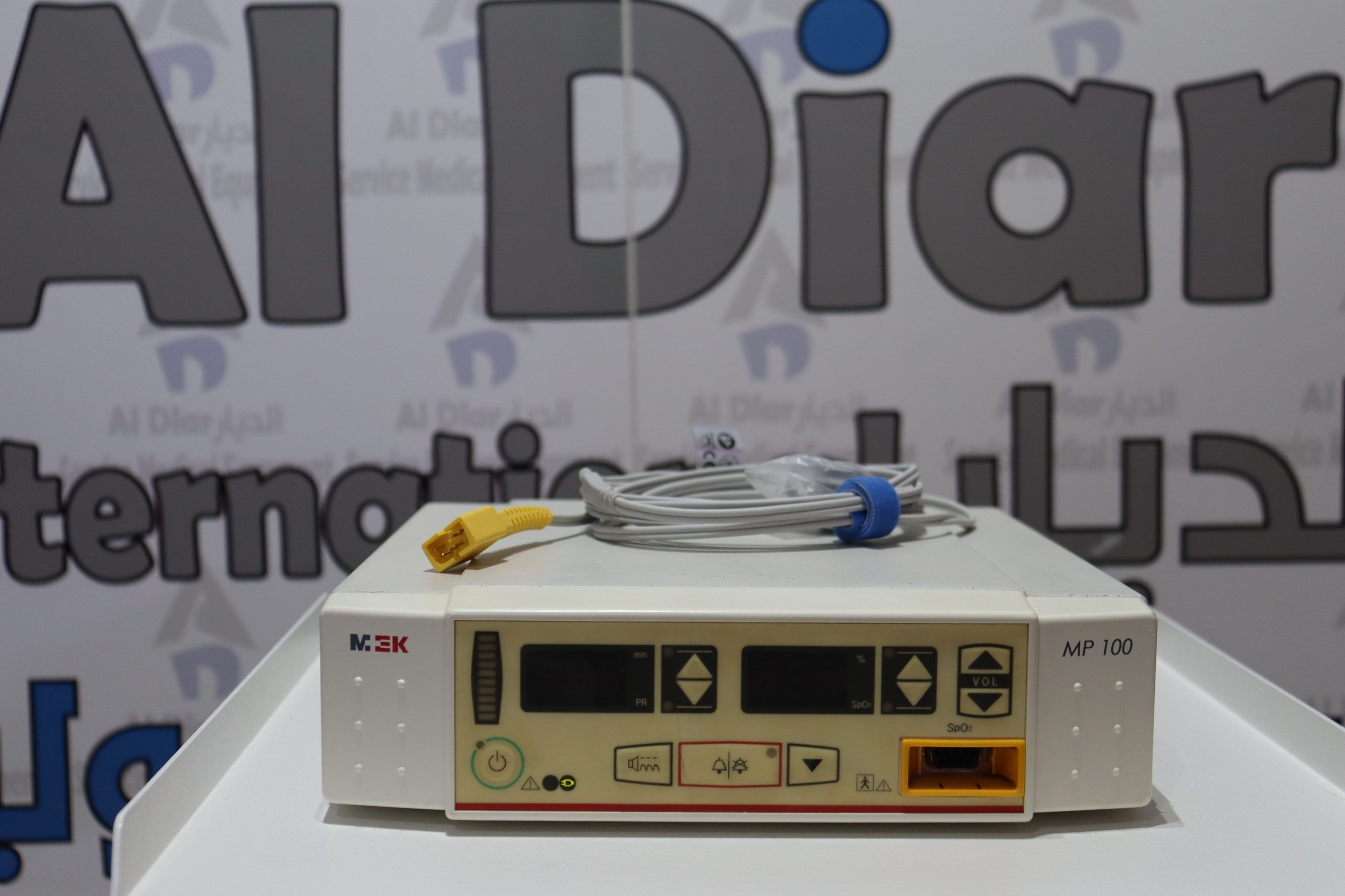 The MP100 MEK Patient Monitor is a medical device used to continuously monitor the vital signs of patients in hospitals or clinics. It is designed to provide accurate and reliable measurements of key health parameters.